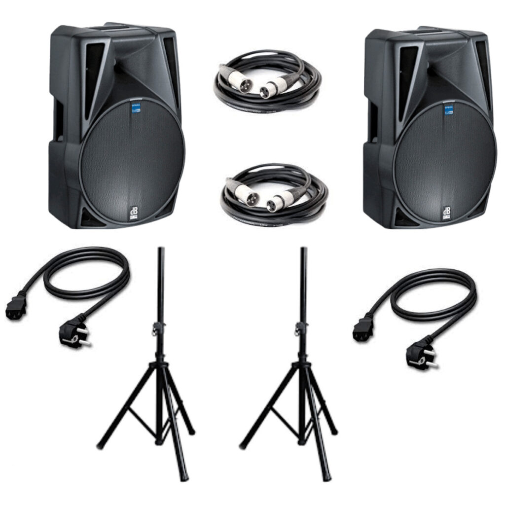 - Loués avec câbles XLR et alimentation nécessaires.